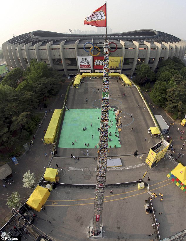 Ο πανύψηλος πύργος φτιαγμένος από 500.000 τουβλάκια άγγιξε τα 31,9 μέτρα και έσπασε κάθε προηγούμενο ρεκόρ. Τα αποκαλυπτήρια του εντυπωσιακού πύργου έγιναν στην Νότια Κορέα, στη Σεούλ, από τον Δανό πρίγκιπα Φρέντερικ, που τοποθέτησε το τελικό τουβλάκι.
